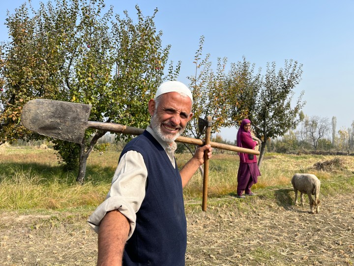 I met Mohammad Afzal, another farmer who owns only a small patch of land now, barely enough to sustain. Most days he works at Gulam Nabi’s orchard, cutting grass to feed his cows.